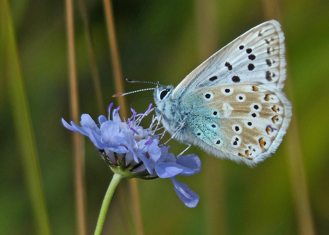 Chalkhill Blue Butterfly on Field Scabious
