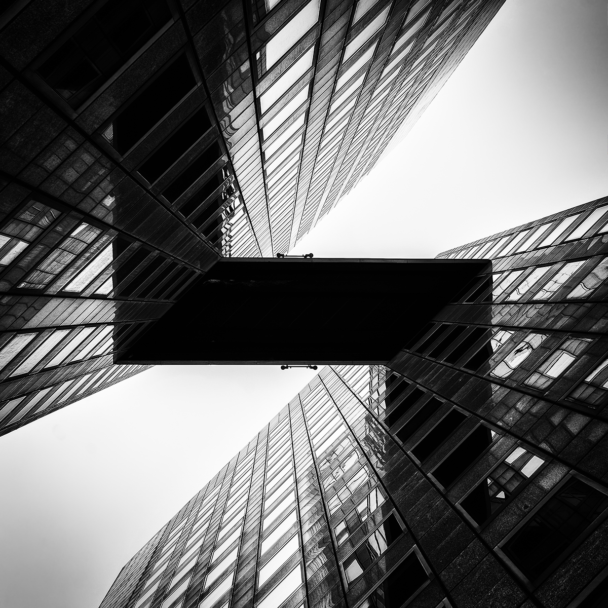 Bridge between two towers at La Defense.